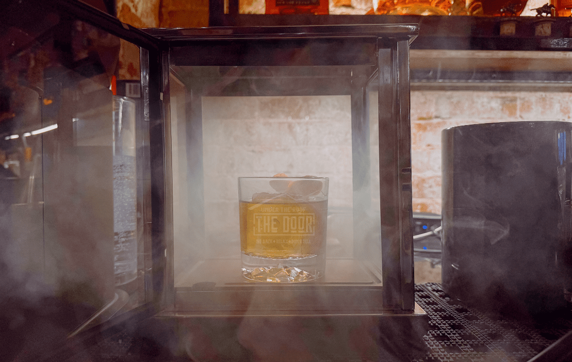 Inspired by the glamour of the Gatsby era, The Door’s menu offers classic cocktails with a modern twist. The Model “T” , their version of the Old Fashion, is a luxurious drink featuring vanilla-infused Woodford bourbon, Woodford chocolate bitters, brown sugar simple syrup, and is finished with a cinnamon stick and an orange swathe for a sophisticated touch.