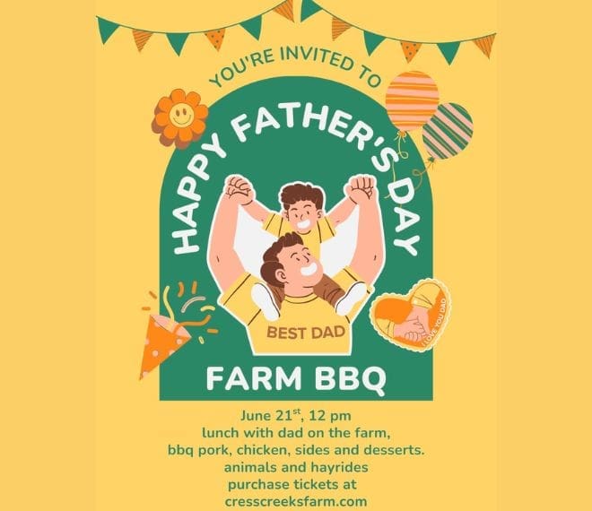 Cress Creeks Farm 4708 Boardtown Rd., Ellijay, GA, United StatesBring dad to the farm for pork and chicken bbq, sides, dessert and drinks! Included with your ticket, enjoy a […]